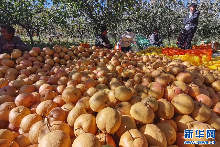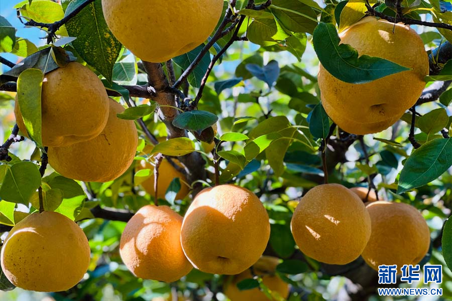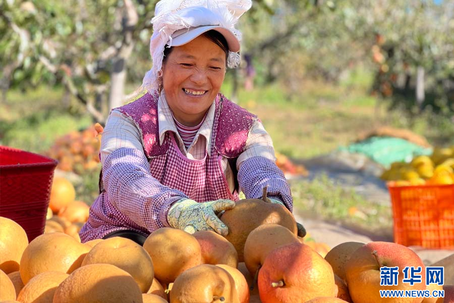 木梨園里果實累累(11月9日攝)。新華網發(永勝縣融媒體中心供圖)