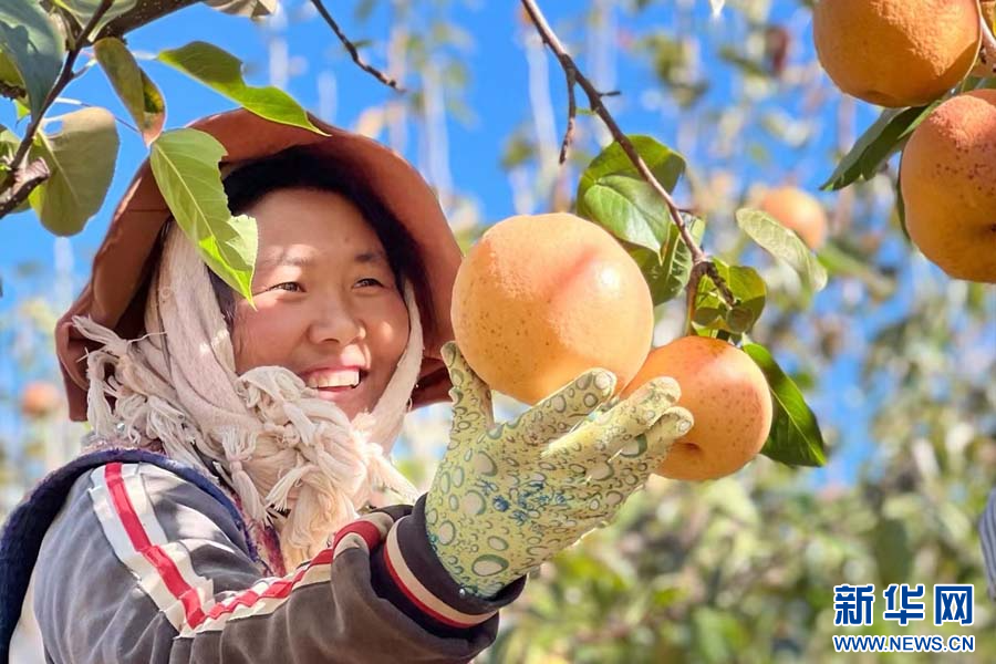 果農采摘木梨(11月9日攝)。新華網發(永勝縣融媒體中心供圖)
