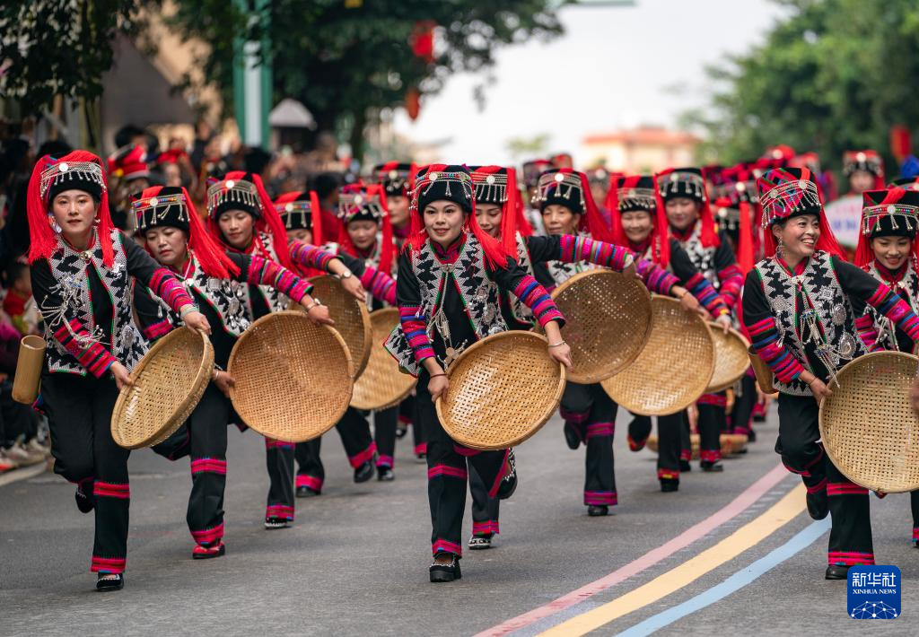 11月19日,綠春縣哈尼族群眾參加哈尼長街古宴巡游展演。新華社記者 陳欣波 攝