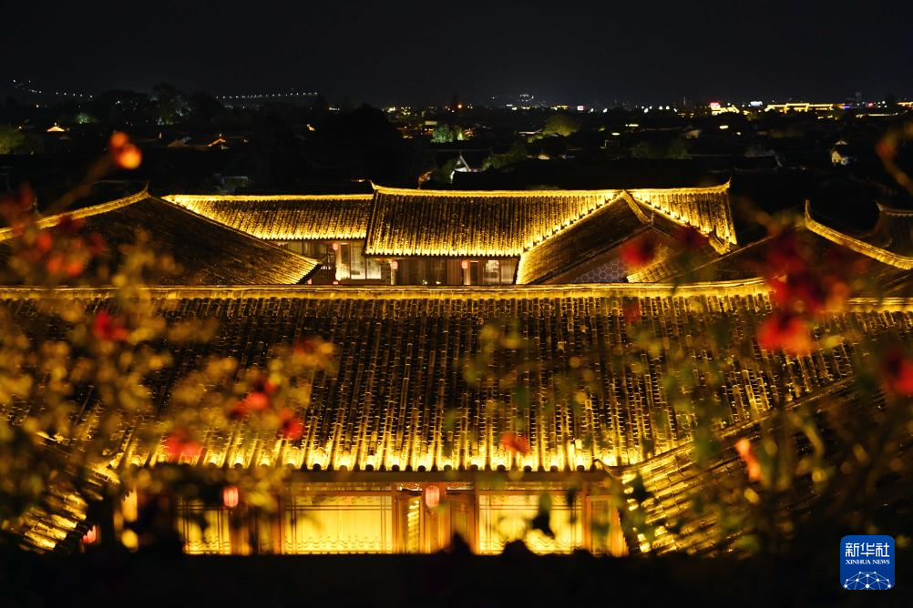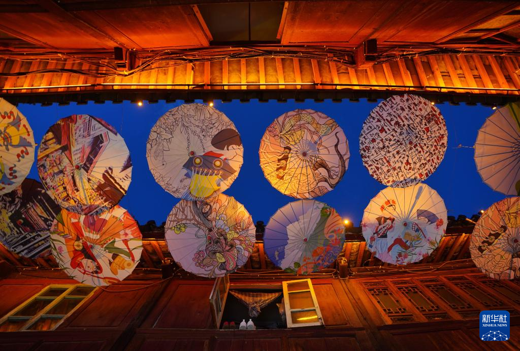 夜色中的麗江古城,燈光璀璨,油紙傘古街散發迷人魅力。