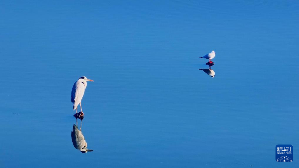 冬日滇池南岸的昆明市晉寧區,人與紅嘴鷗和諧相處。