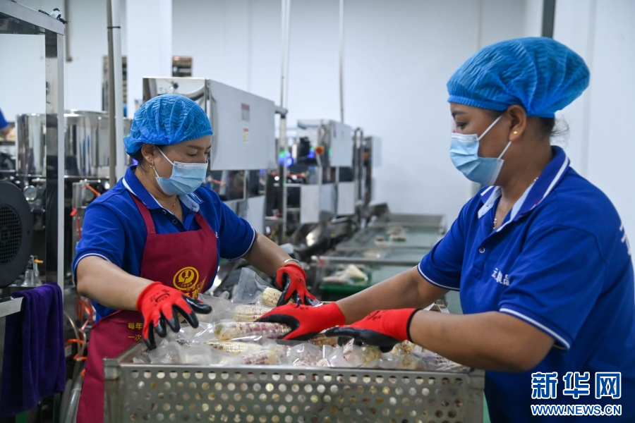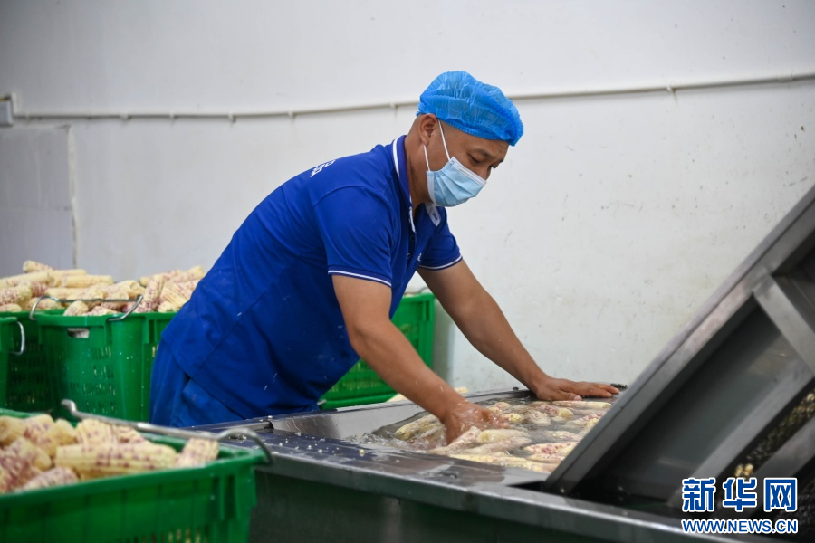 工人正在處理包裝好的糯玉米(11月25日攝)。新華網發(劉熙 攝)
