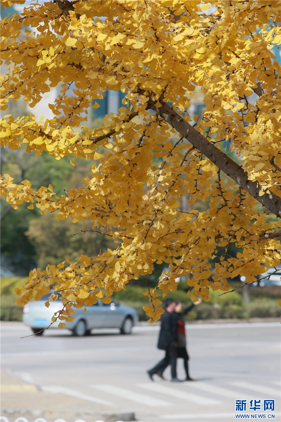 在曲靖市沾益區珠江源大道拍攝的銀杏(12月4日攝)。新華網發(楊俊鵬 攝)