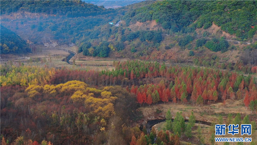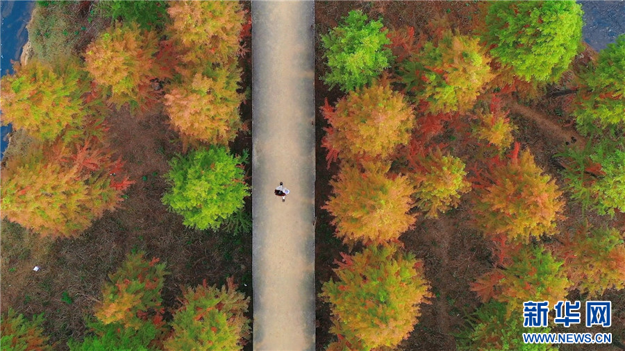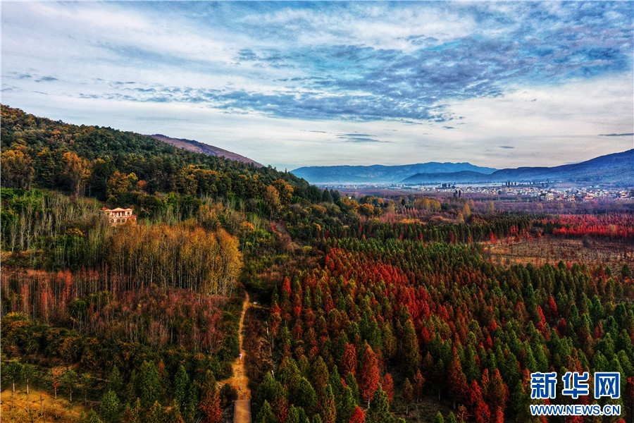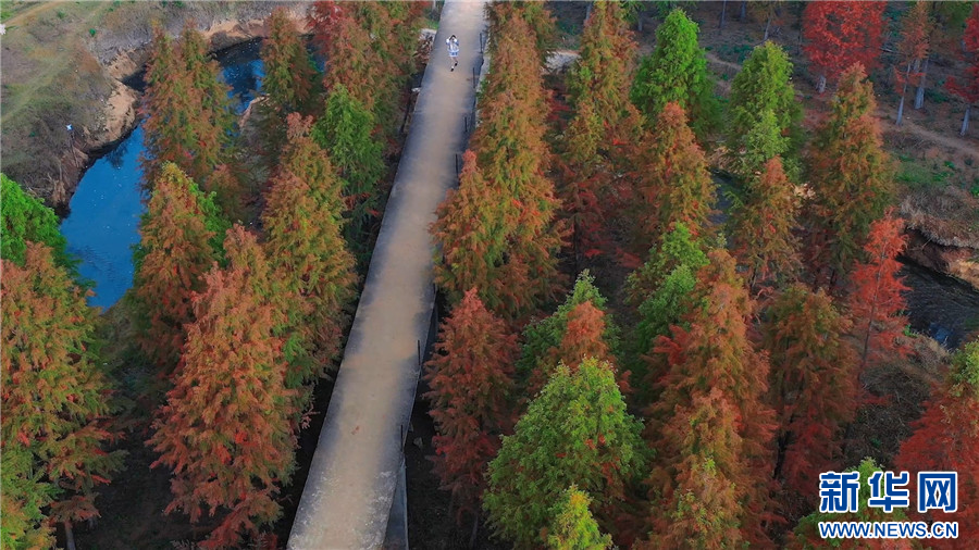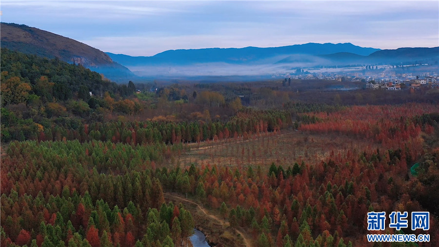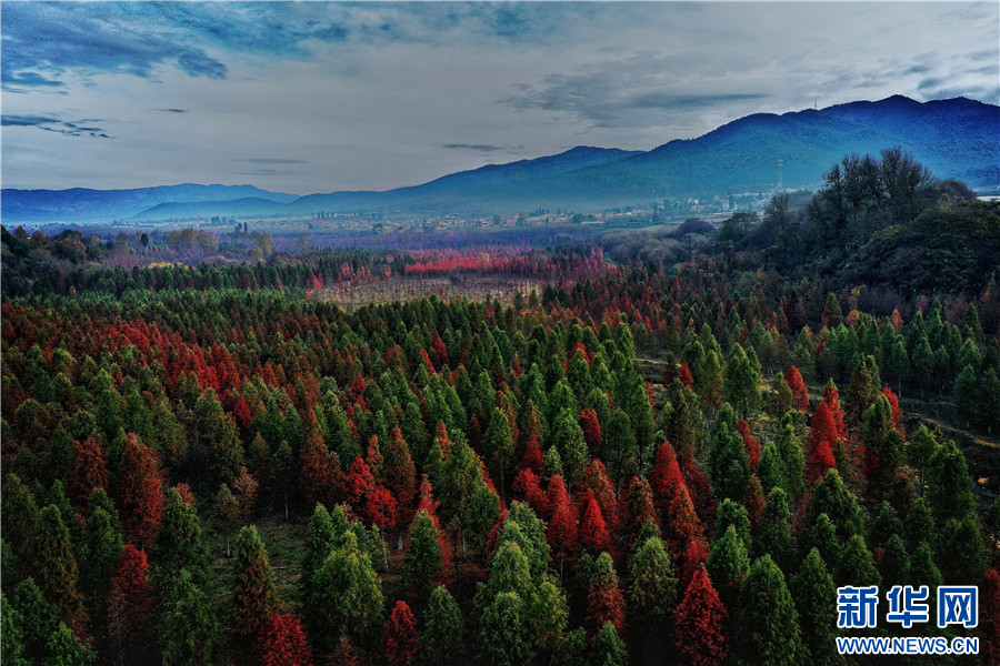 昆明市盤龍區滇源街道甸尾村,水杉漸紅(12月5日攝)。新華網發(供圖)