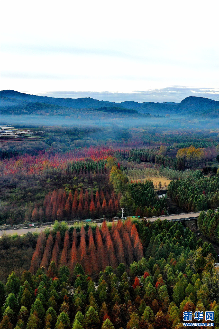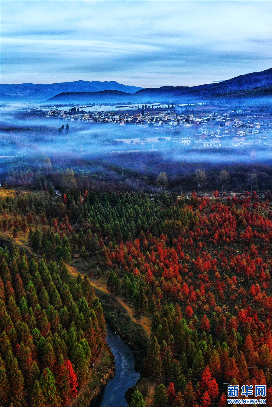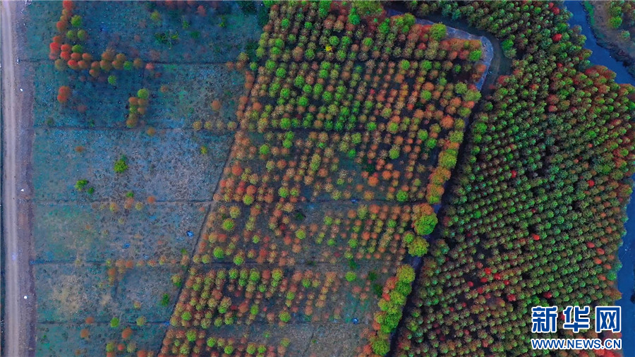 航拍昆明市盤龍區滇源街道甸尾村水杉林(12月5日攝)。新華網發(供圖)