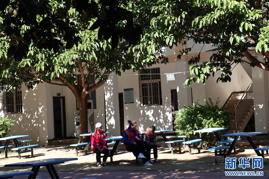 冬日的陽光下,40歲的左仁珍和工友們坐在查利么“幸福里”社區院子里,享受著舒適悠閑的午后時光。