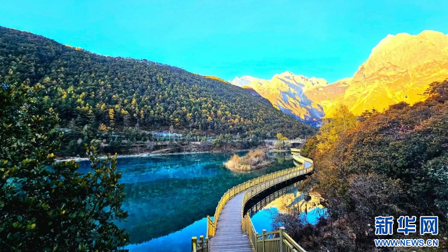 玉龍雪山和藍月谷互相映襯(資料圖)。新華網發(和學乾 攝)