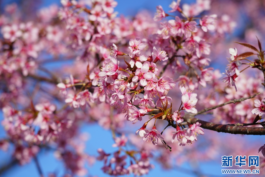 昌寧冬櫻花開滿枝頭(12月21日攝)。新華網發(昌寧縣融媒體中心供圖)