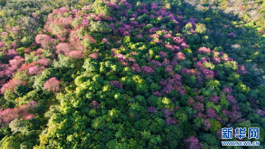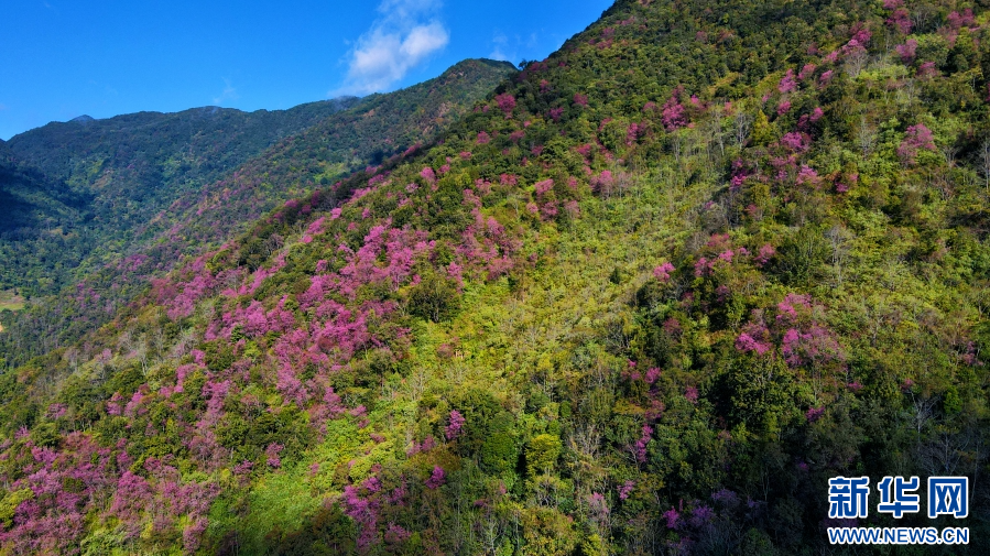 施甸縣善洲林場東麓十萬余株野櫻花如期綻放(12月18日攝)。新華網發(施甸縣融媒體中心供圖)