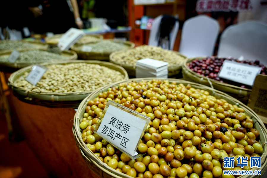 展會現場展出的咖啡豆(1月5日攝)。新華網發(劉起 攝)