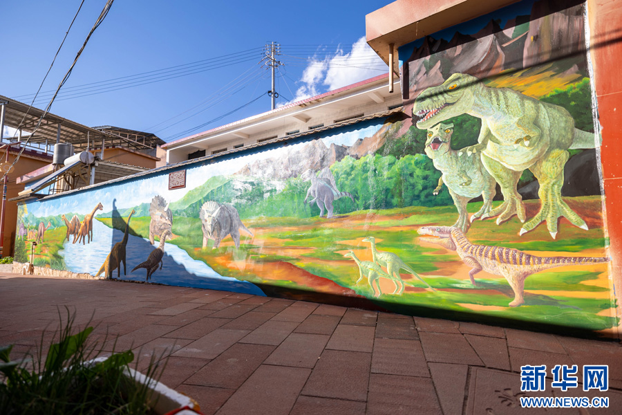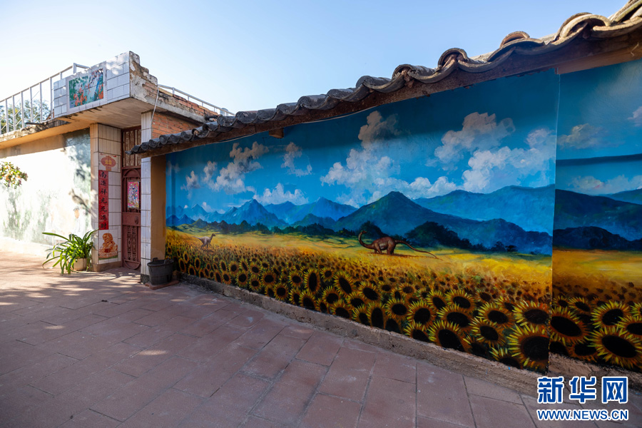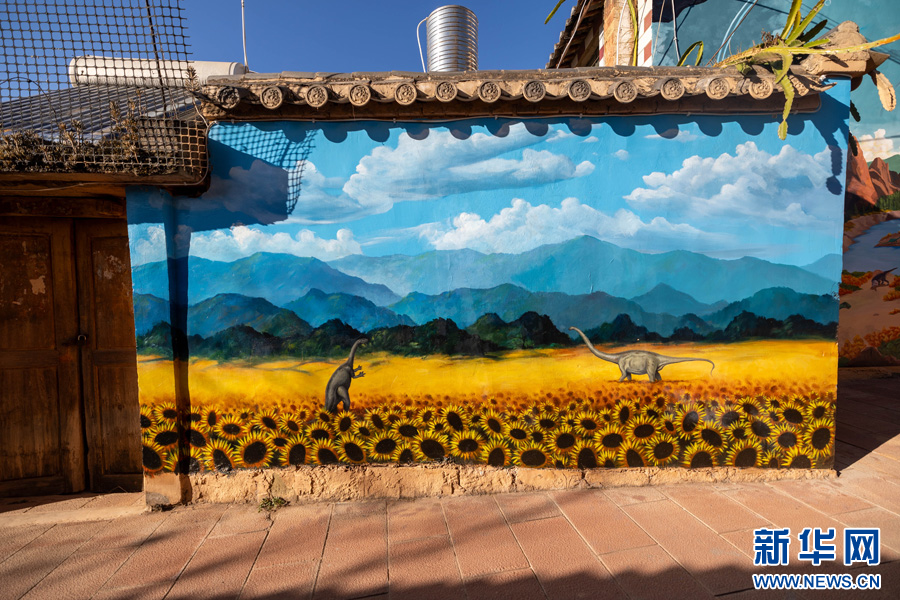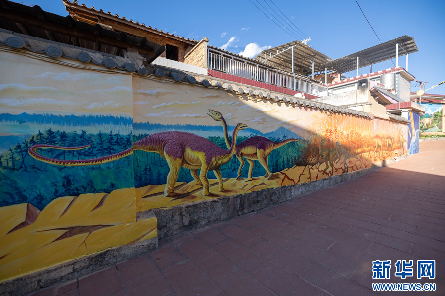 走進云南省楚雄彝族自治州祿豐市侏羅紀新村,便會被村中無處不在的恐龍裝飾元素所吸引,其中最引人注目的便是隨處可見的恐龍形象的手繪壁畫。近年來,隨著農村人居環境整治工作的深入開展,村中出現了一幅幅栩栩如生的壁畫,一條條干凈整潔的小道,一個個獨具特色的微景觀……扮靚鄉村“高顏值”。