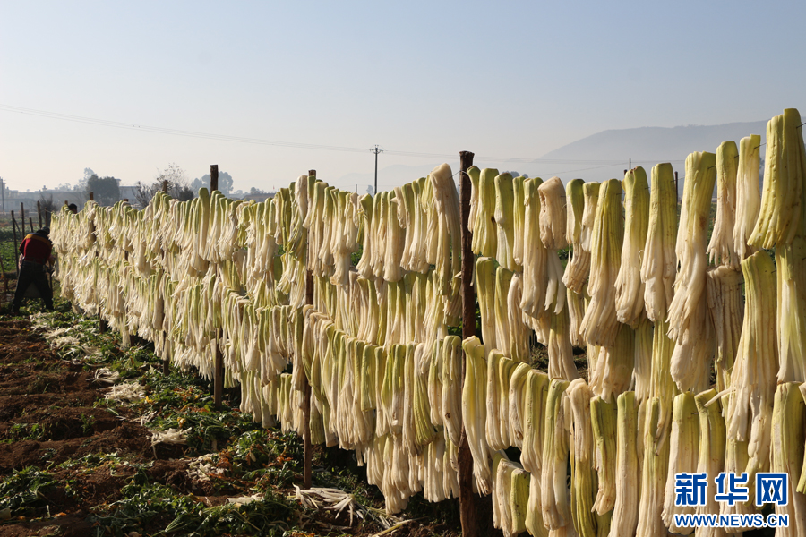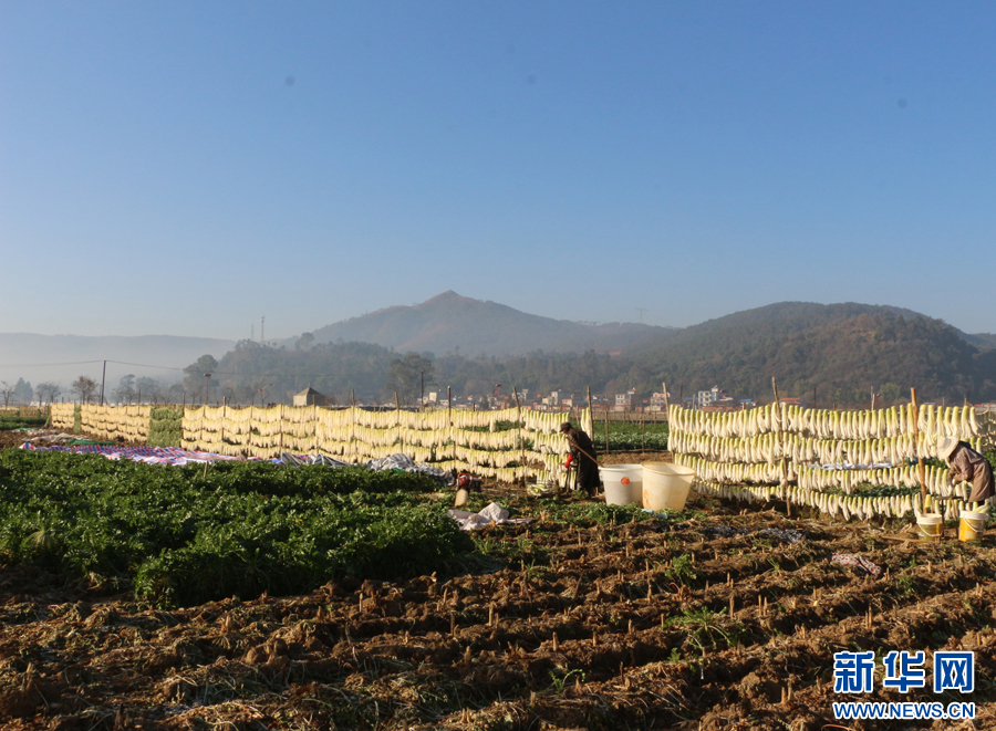晾曬在碧城鎮西山村委會的蘿卜(1月9日攝)。新華網發(張蕓慧 攝)