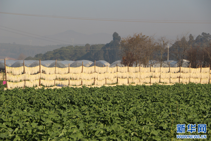 碧城鎮萬松村委會蘿卜收購點的蘿卜條(1月9日攝)。新華網發(張蕓慧 攝)
