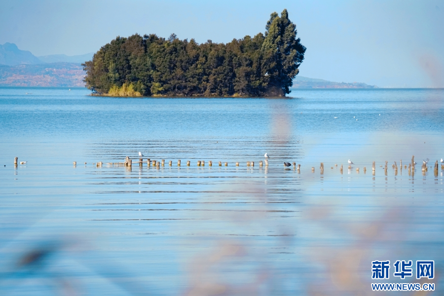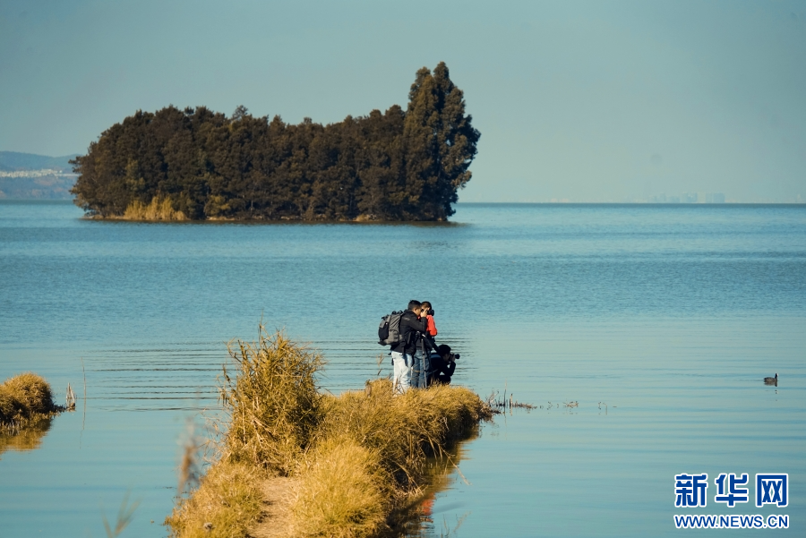 滇池湖水碧藍如洗(1月13日攝)。新華網發(楊景浩 攝)