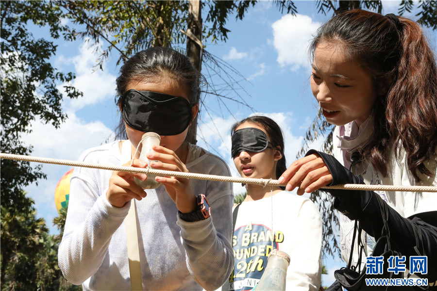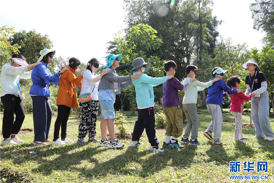 1月21日,學生們在中國科學院西雙版納熱帶植物園體驗“昆蟲出行”。