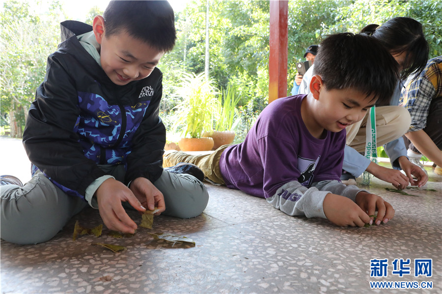 1月21日,學生們在中國科學院西雙版納熱帶植物園參加“樹葉復原”活動。