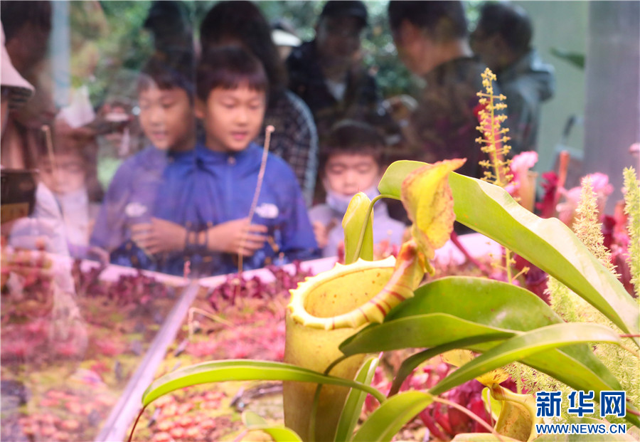 1月21日,學生們在中國科學院西雙版納熱帶植物園參觀豬籠草。