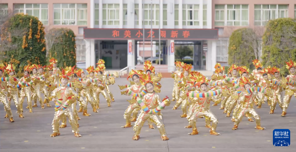 春節臨近,云南省昆明市晉寧區晉城一小的學生們在校園里排練了一支別具特色的舞蹈《和美小龍鬧新春》,以此慶祝即將到來的中國龍年春節,傳承中華民族傳統文化。