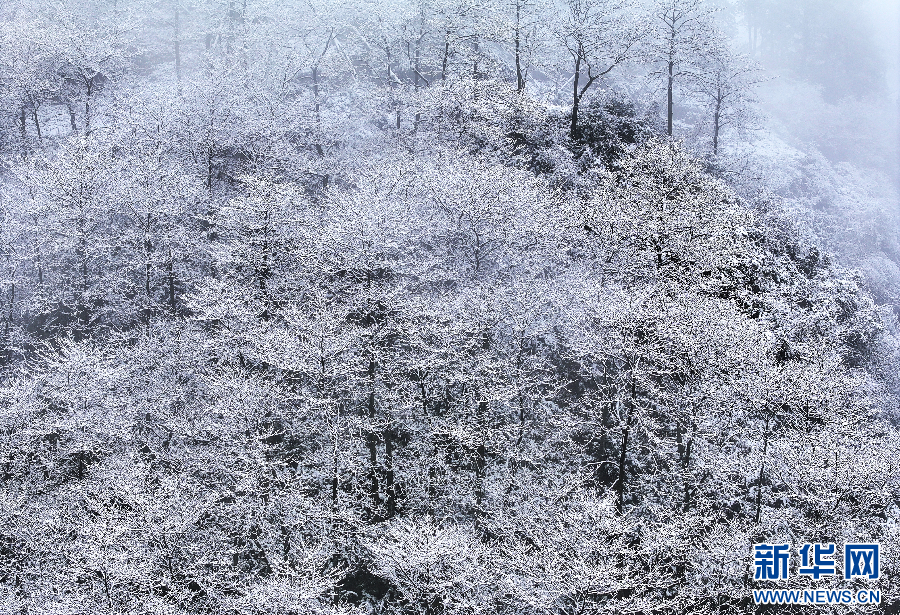 銀裝素裹的樹林(1月22日攝)。新華網發(大關縣委宣傳部供圖)