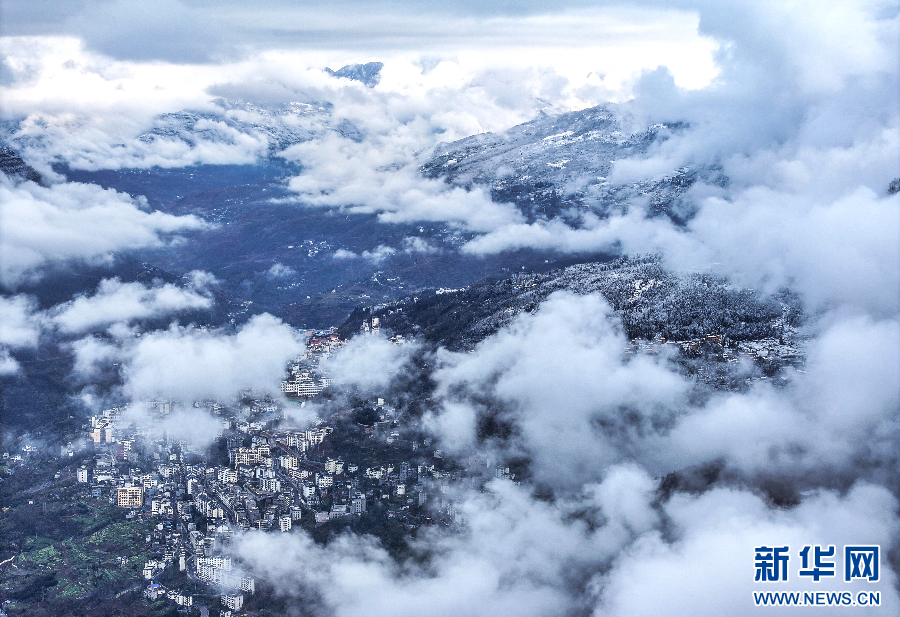 云霧之下的大關縣城(1月22日攝)。新華網發(大關縣委宣傳部供圖)