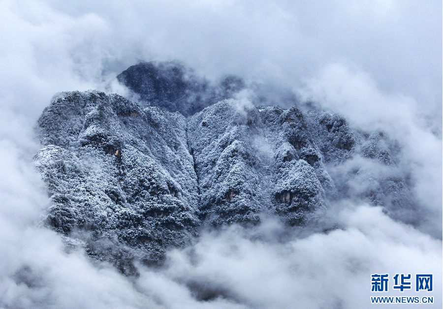 近日,云南省大關縣迎來降雪。連綿的山巒白雪皚皚,層層薄霧縈繞山間,宛如仙境。(完)(唐應平 陶松 汪朗)