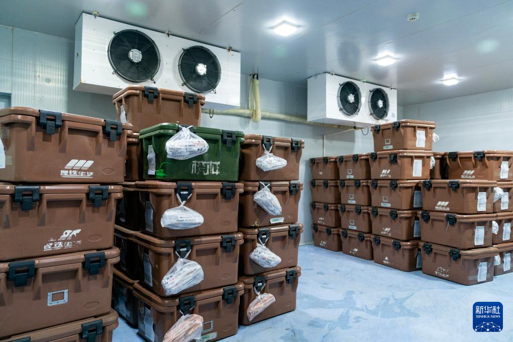 這是1月26日在中國鐵路昆明局集團有限公司冷鏈套餐生產基地冷庫內拍攝的等待運輸的冷鏈套餐。新華社記者 陳欣波 攝