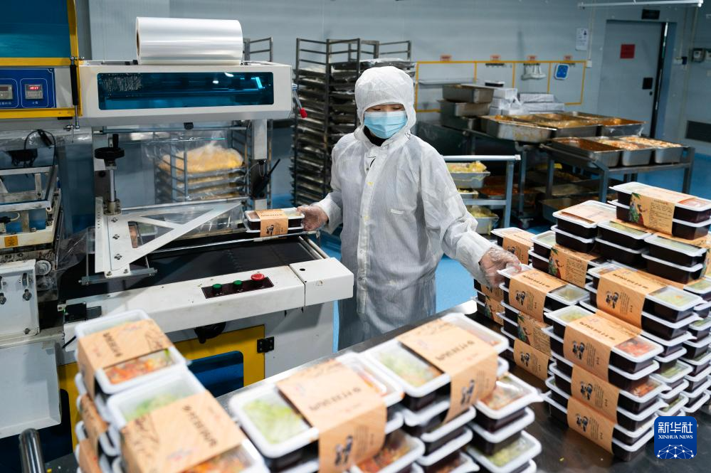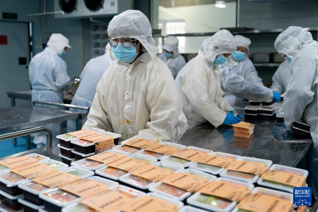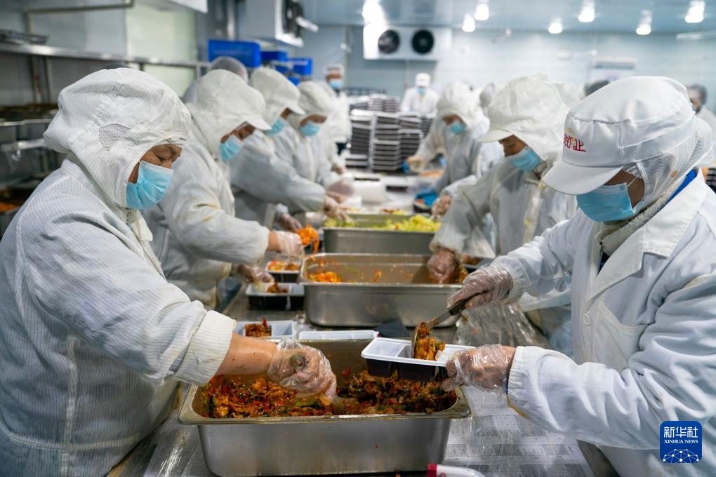 1月26日,工作人員在中國鐵路昆明局集團有限公司冷鏈套餐生產基地內將菜品裝盒。新華社記者 陳欣波 攝