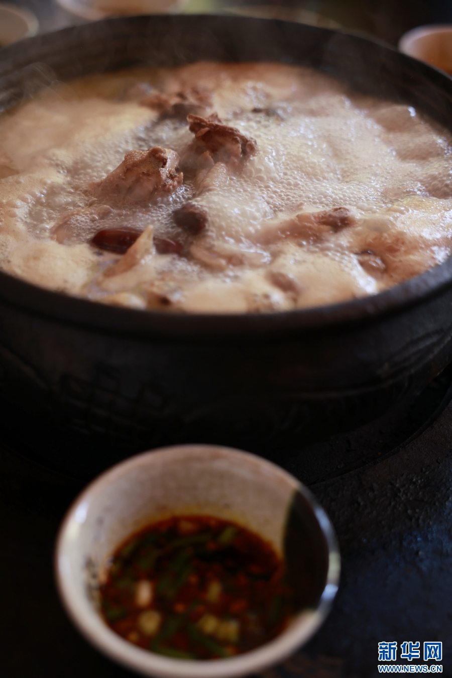 用尼西黑陶鍋烹飪的土雞(2023年11月16日攝)。新華網發(徐華陵 攝)