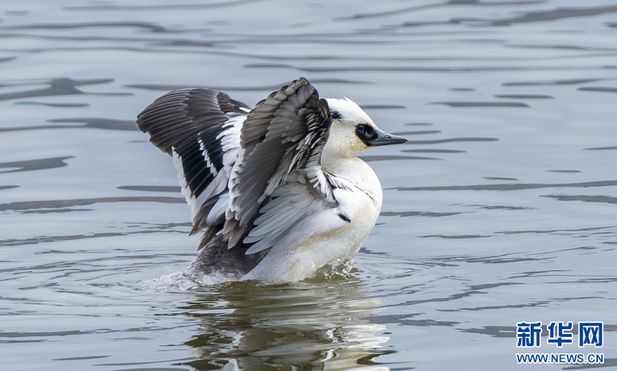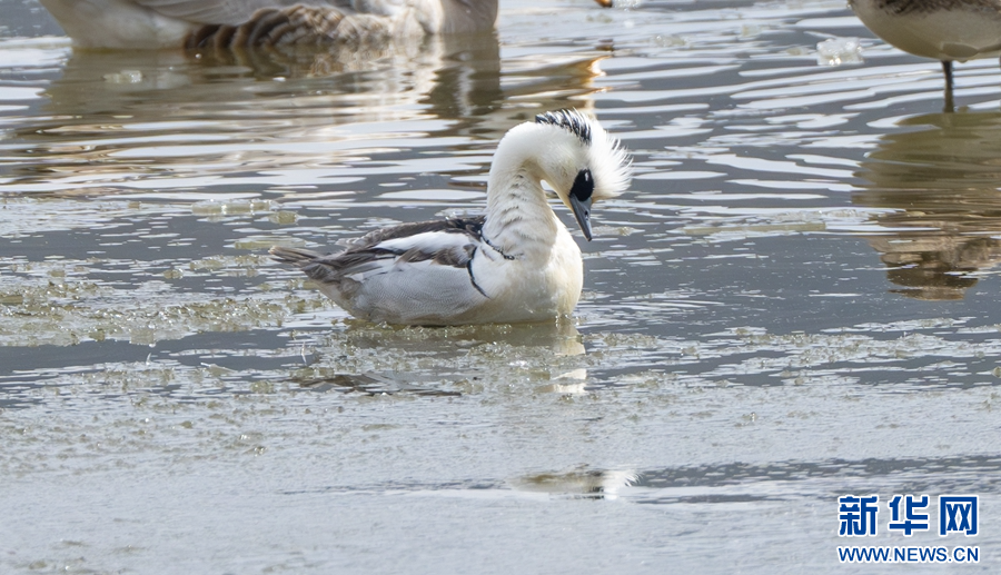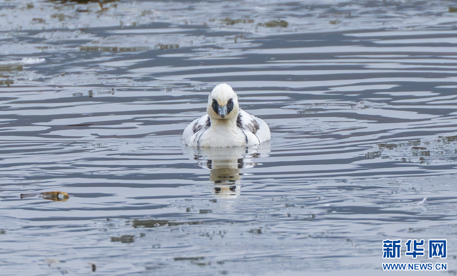 1月27日,攝影師在云南省迪慶藏族自治州納帕海國際重要濕地,拍攝到一種頭部黑白相間的野鴨,經鑒定該物種為有“熊貓鴨”之稱的斑頭秋沙鴨,是國家二級重點保護野生動物。