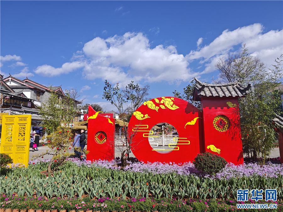 麗江古城春節花展一隅(2月1日攝)。新華網發(和潤仙 攝)