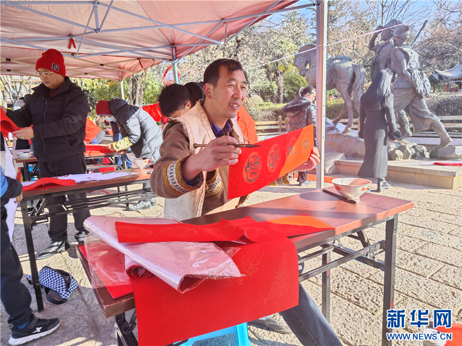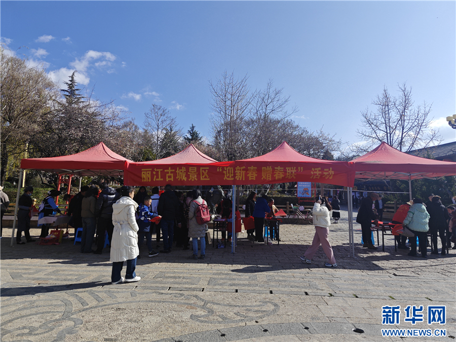 麗江古城景區“迎新春 贈春聯”活動現場(2月1日攝)。新華網發(和潤仙 攝)