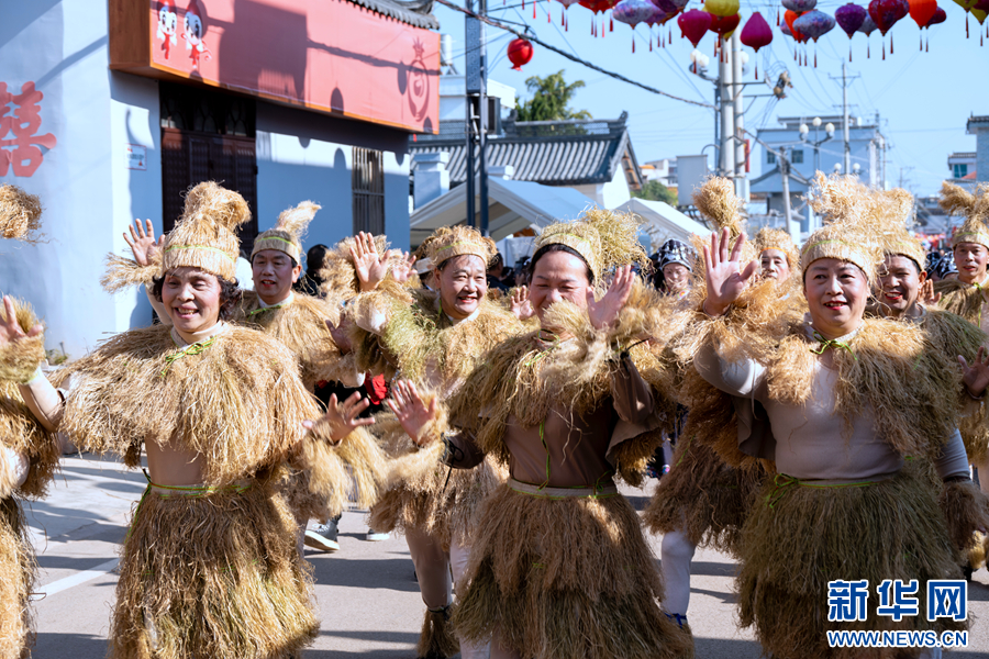 身著民族盛裝的演職人員巡游表演(2024年2月2日攝)。新華網發(劉起 攝)