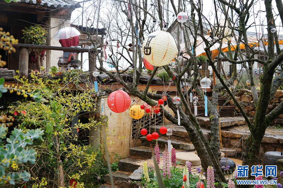鳳陽邑“有風小院”布置了各類新春元素小掛件(2月11日攝)。新華網發(大理市融媒體中心供圖)