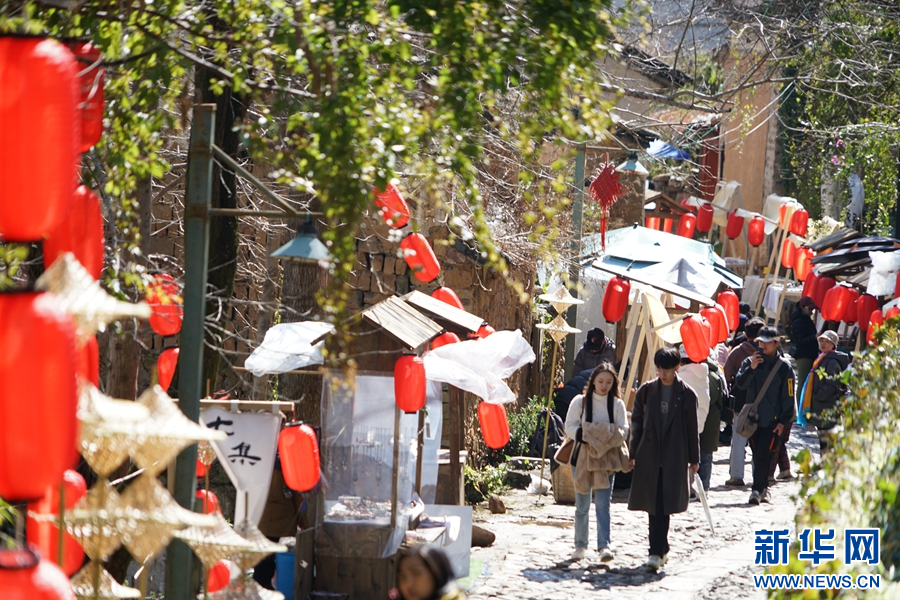 游客在鳳陽邑集市上游覽閑逛(2月11日攝)。新華網發(大理市融媒體中心供圖)