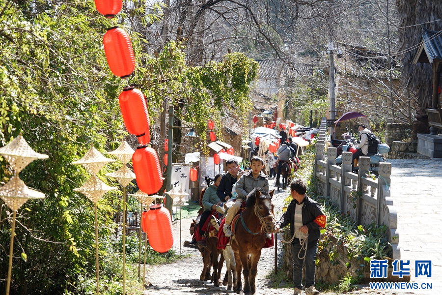 春節期間,游客在鳳陽邑體驗騎馬游覽茶馬古道(攝于2月11日)。新華網發(大理市融媒體中心供圖)