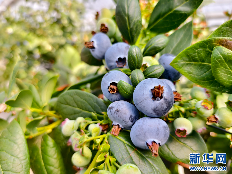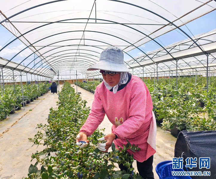 農戶收獲藍莓(2月16日攝)。新華網發(陳華英 攝)