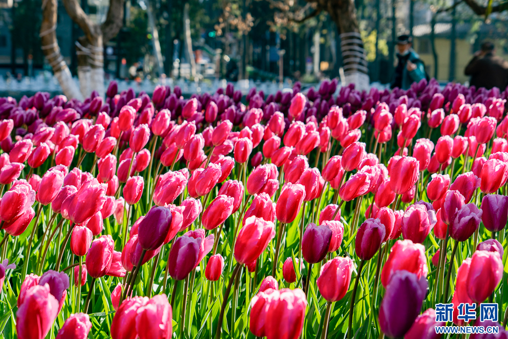 近日,云南省昆明市翠湖公園的郁金香競相綻放,吸引不少游客前來觀賞游覽。(完)