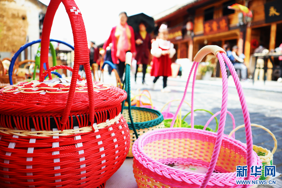 手工編織的花籃(2月19日攝)。新華網發(楊雯 攝)