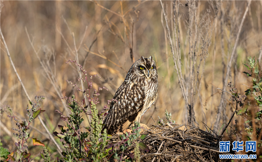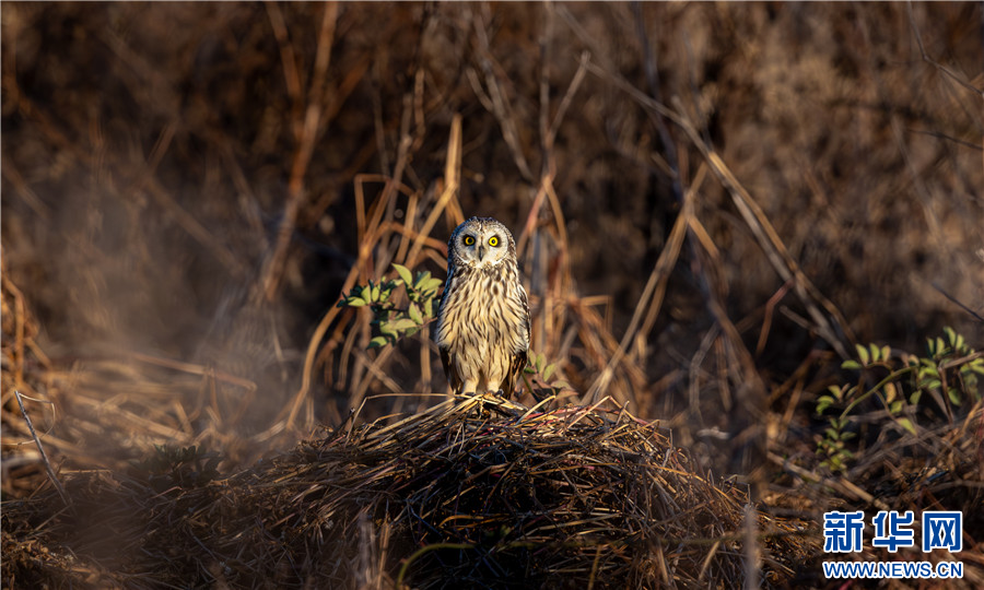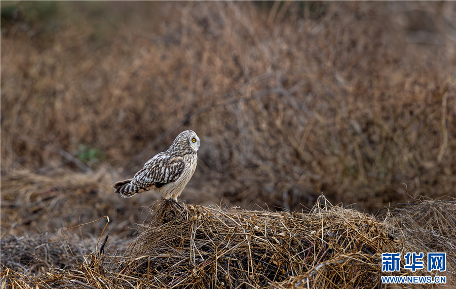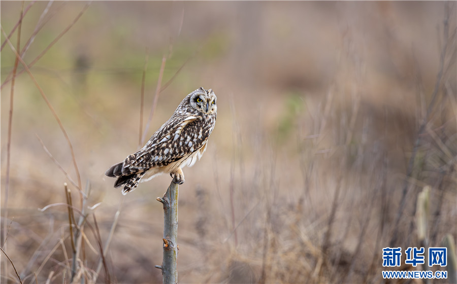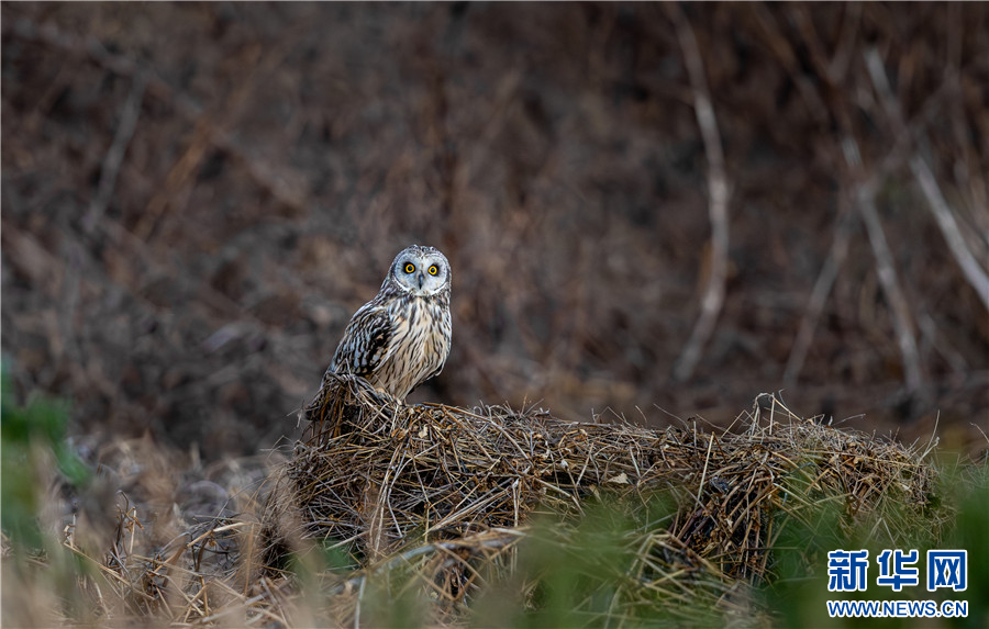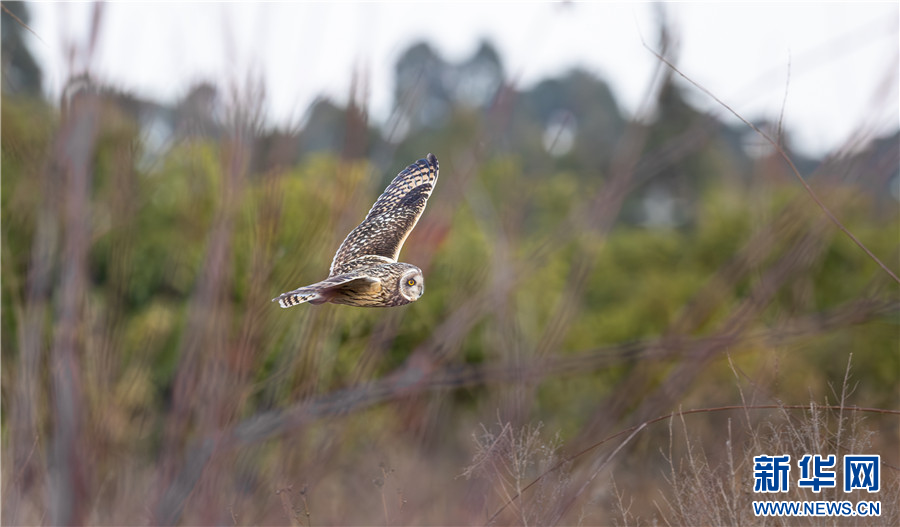 在昆明晉寧南滇池國家濕地公園拍攝到的短耳鸮(2月19日攝)。新華網發(宋光旭 攝)
