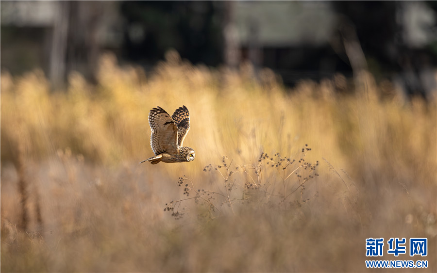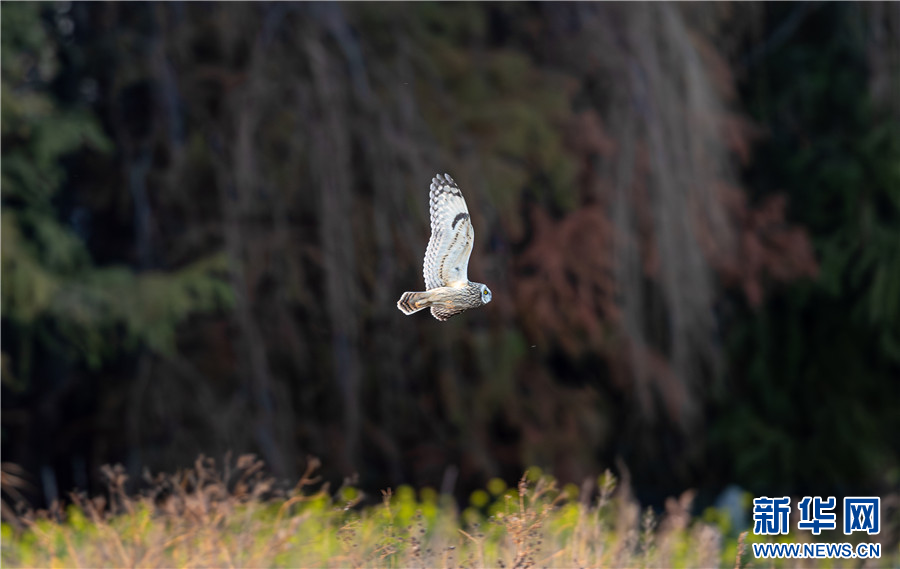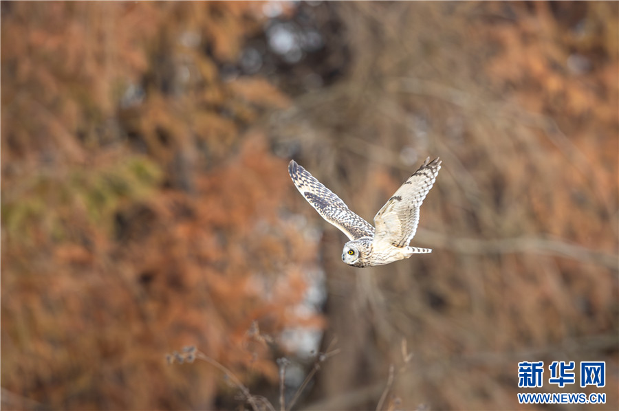 短耳鸮展翅飛翔(2月19日攝)。新華網發(宋光旭 攝)