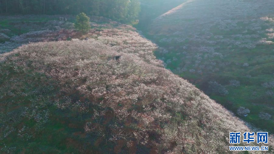 近日,云南省楚雄彝族自治州武定縣獅山鎮的萬畝櫻桃花陸續綻放,漫山遍野的櫻桃樹上,簇簇雪白掛滿枝頭。