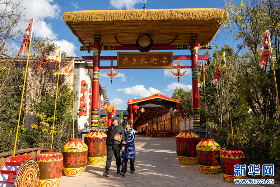 紫溪彝村長街宴(1月3日攝)。新華網發(李浩 攝)