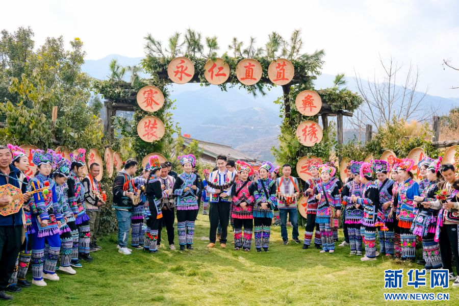 熱鬧的直苴村(2月24日攝)。新華網發(永仁縣融媒體中心供圖)