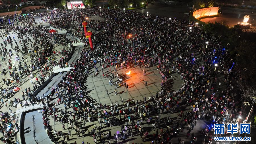 群眾在廣場上打跳(2月24日攝)。新華網發(永仁縣融媒體中心供圖)