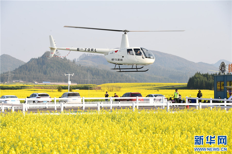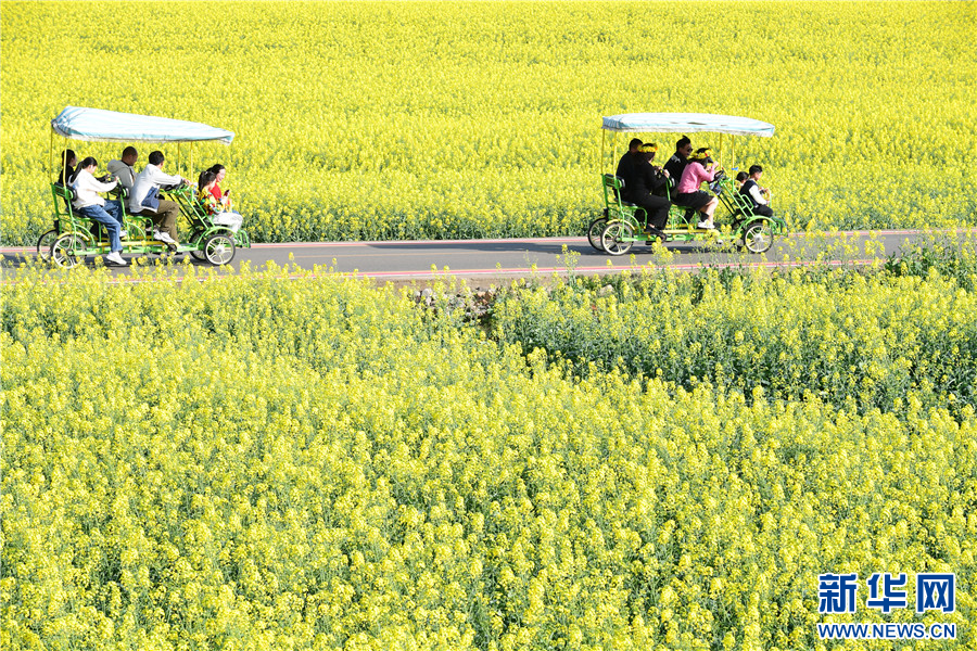 近日,云南省曲靖市羅平縣近百萬畝油菜花競相綻放,微風吹過,油菜花海泛起黃色波浪,與峰林、村莊、樹林相映成趣,勾勒出美麗春色,吸引了大量游客前來賞花游玩。近年來,羅平縣將油菜產業與文旅產業深度融合,帶動鄉村餐飲、民宿等蓬勃發展,助力鄉村振興。新華網發(毛虹 攝)
