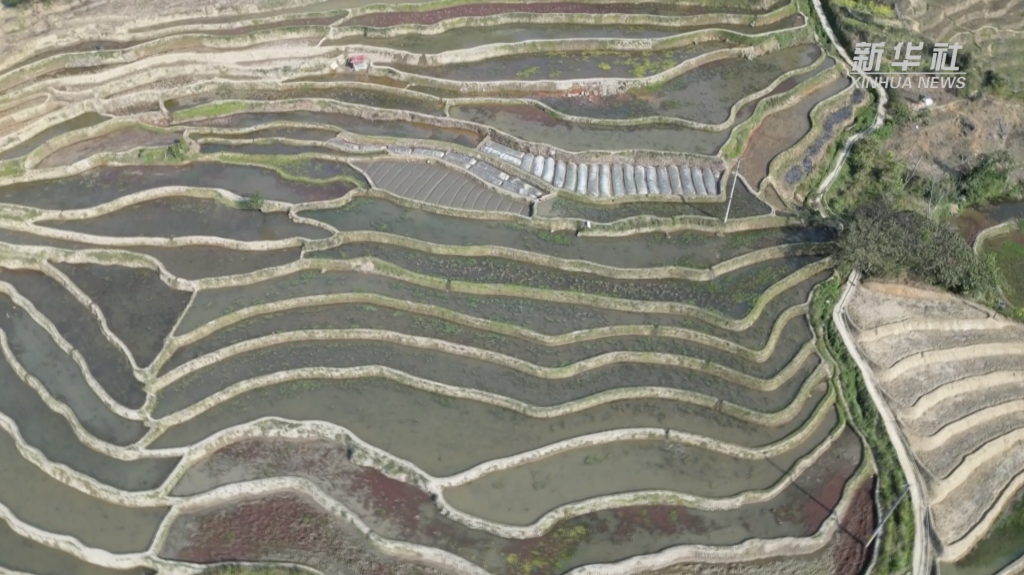 正值春耕時節,云南省紅河州哈尼梯田進入水稻育秧期。在紅河州綠春縣和元陽縣,農戶們嫻熟地整理秧床、播撒稻種,正式開啟新一年的“春忙”模式。