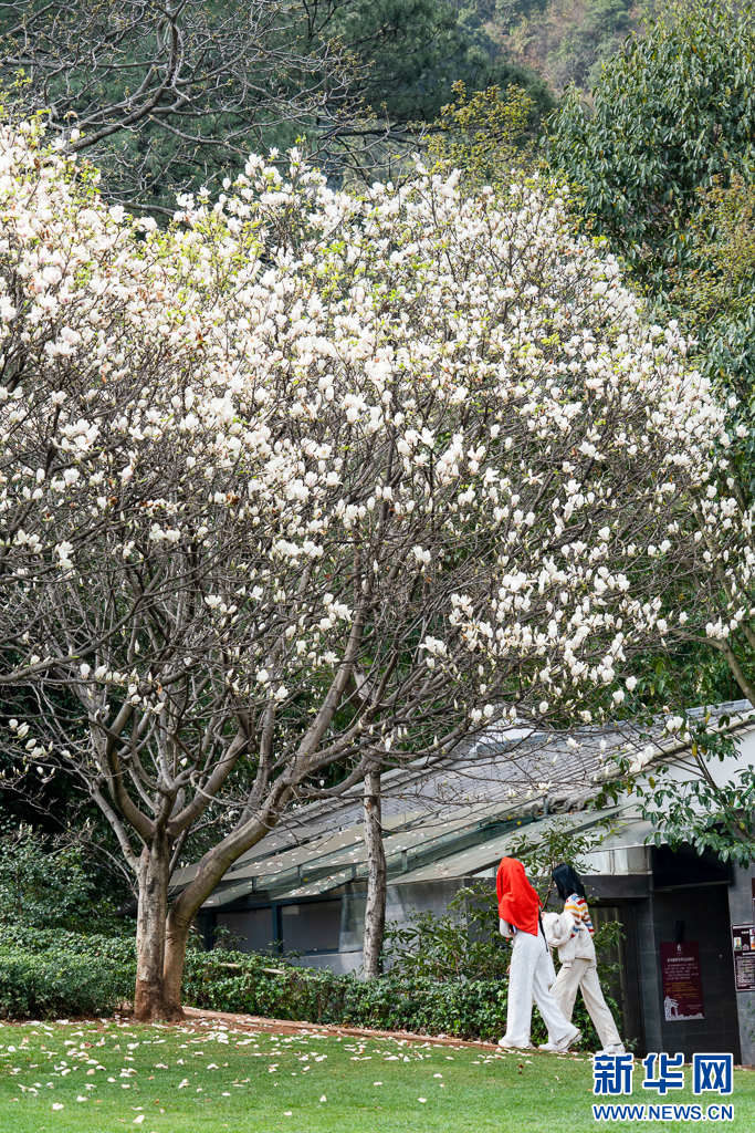 近日,云南省昆明市各處的玉蘭花陸續進入盛放期,不同品種和顏色的玉蘭在春日里次第綻放,美不勝收。