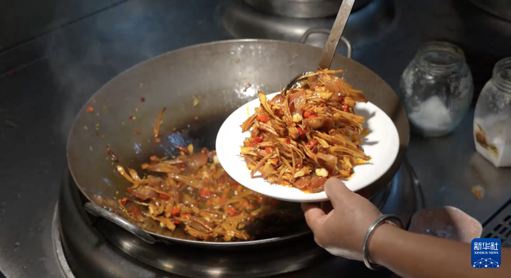 撿回來的木棉花,去除花瓣,留下花蕊,經焯水、清洗后,加上火腿、辣椒和大蒜炒制后就是一道極為下飯的家常菜——火腿炒木棉花?;蚣由厦刂频拿缂依苯纷髁弦话?,一口下去,滿口清香,仿佛整個“春天”都在嘴里。