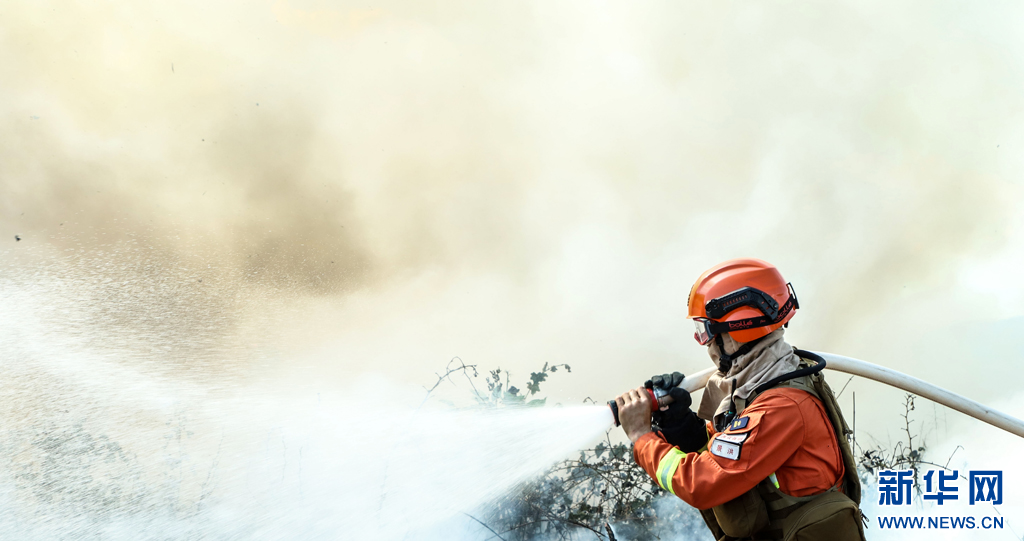 消防員快速接近火線(2月29日攝)。新華網發(路言 攝)