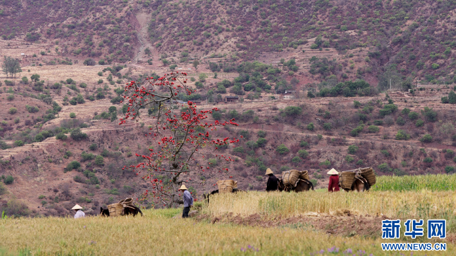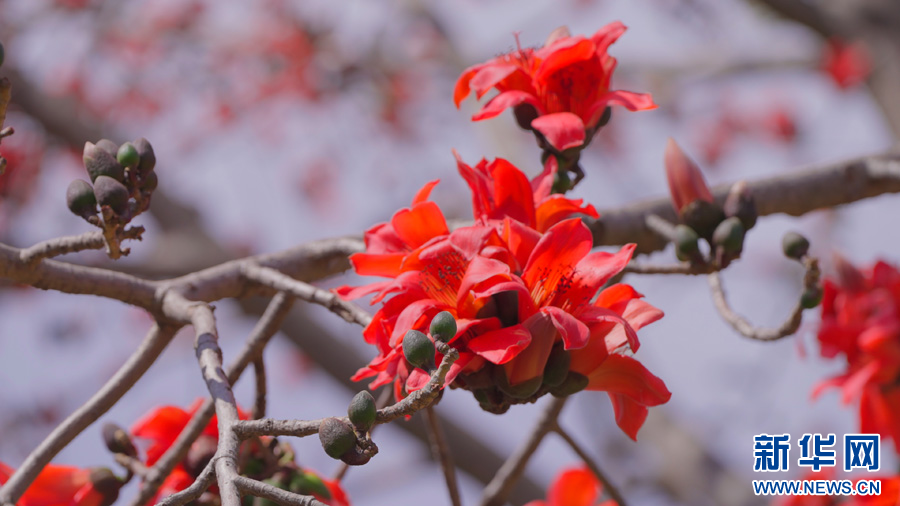 早春時節,在云南省楚雄彝族自治州武定縣己衣鎮,山嶺間攀枝花開得紅紅火火。攀枝花也稱木棉,每年一月份開花,花期可以延續到四月份。攀枝花不僅可觀賞,還可做菜,涼拌攀枝花不僅口感好,還清熱利濕,是當地一道不容錯過的美食!(武學成 余林強)